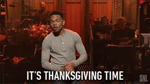 Chance The Rapper performs on SNL, celebrating Thanksgiving with the iconic phrase 'It's Thanksgiving Time'.