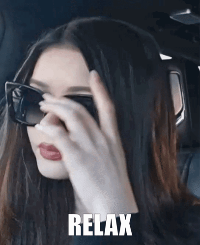 Itskatchii pulls down her sunglasses, revealing her eyes, with the word 'RELAX' superimposed.