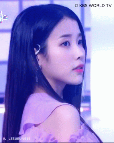 South Korean singer and actress IU (Lee Ji-eun) shares a charming smile, captured during a KBS WORLD TV broadcast.