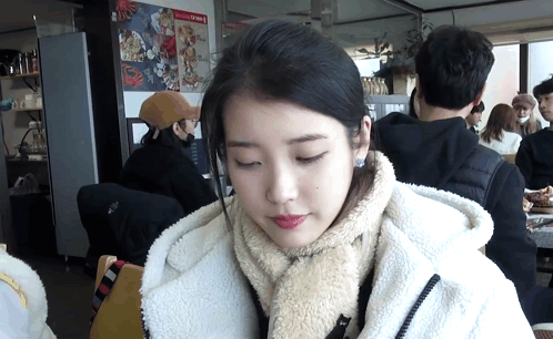 a woman wearing a white jacket and scarf looks down