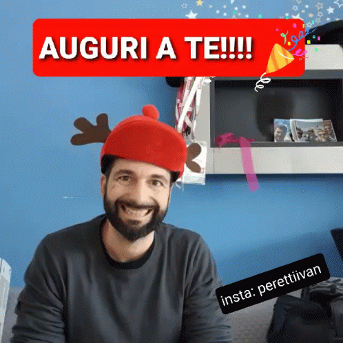 Ivan Peretti, wearing a festive elf hat, spreads holiday cheer with a message of 'Auguri a Te!'
