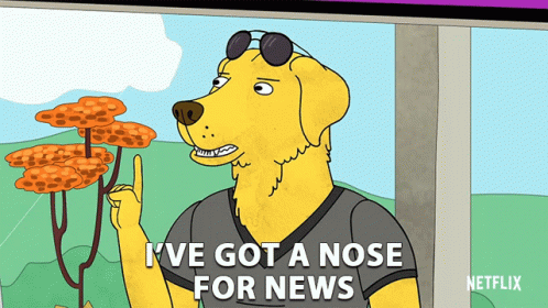 Mr. Peanutbutter from BoJack Horseman declares, 'I've got a nose for news,' pointing to his nose.