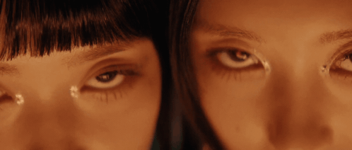 a close up of two women 's eyes with tears running down their faces