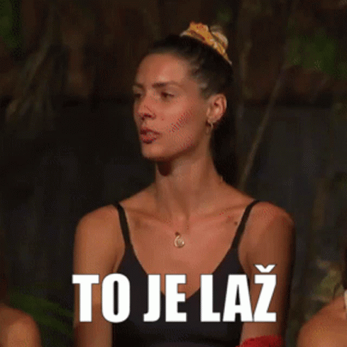 Ivona Kokovic from Survivor reacts with 'That is a lie' (To Je Laž), expressing disbelief or disagreement.