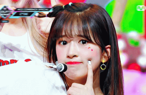 IZ*ONE's Yujin, also known as Ahn Yujin, shows off her adorable charm with a cute finger heart gesture during a performance.