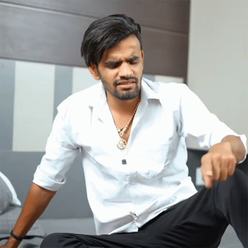 Prince Verma, wearing a white shirt and gold necklace, sits on the floor, gesturing with the caption 'Jaa!'