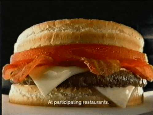 A mouth-watering close-up of the Jack In The Box Sourdough Jack burger, featuring bacon and cheese.
