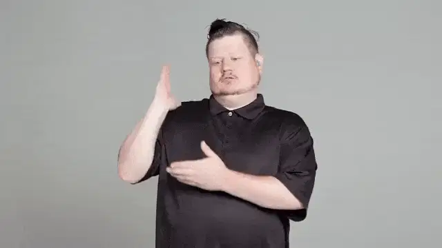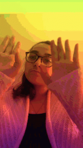 Jadeaf performs various expressive hand gestures, possibly sign language, against a backdrop of shifting colored lights.