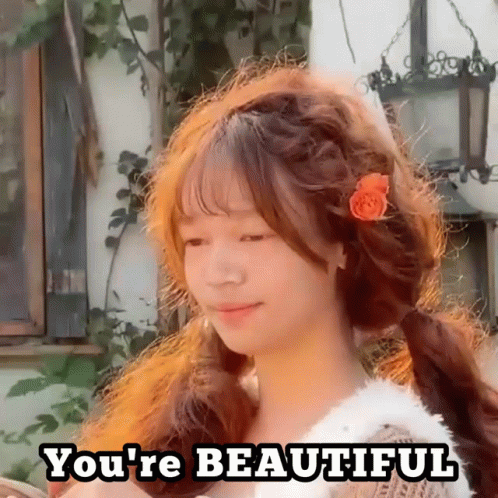 Jagyasini Singh, with pigtails and a flower in her hair, smiles and says 'You're BEAUTIFUL'.
