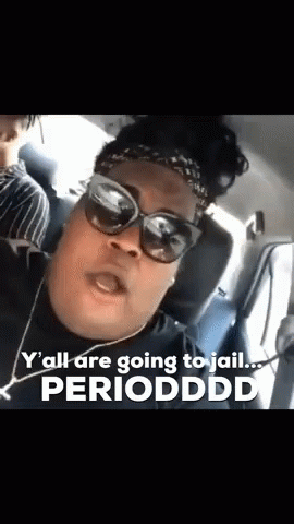 A person, identified as iamperez, in sunglasses emphatically states, "Y'all are going to jail... PERIODDDDD."