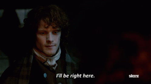 Jamie Frasier from Outlander reassures with 'I'll be right here' in a Starz ad.