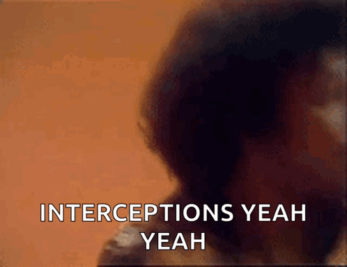 Person with an afro dancing energetically to music, with 'INTERCEPTIONS YEAH YEAH' text overlay.