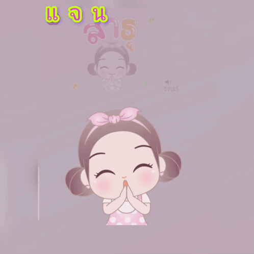 Animated girl Jan performs a respectful "Sathu" gesture with floating stars.