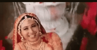 Karishma Kapoor celebrates her birthday, smiling joyfully as rose petals fall around her.