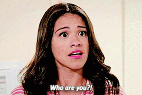 Gina Rodriguez as Jane Villanueva from Jane The Virgin, looking shocked and asking "Who are you?!"
