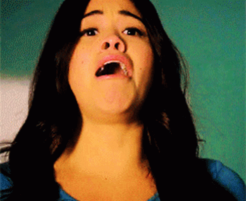 Jane Villanueva, played by Gina Rodriguez, shows an exaggerated crying and upset expression.