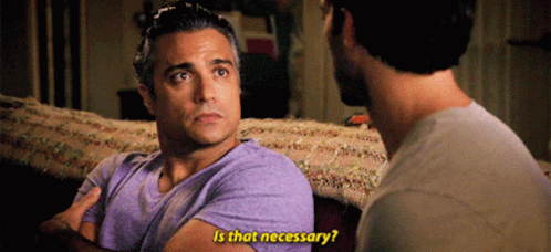 Rogelio De La Vega, played by Jaime Camil, asks 'Is that necessary?' in a scene from Jane The Virgin.