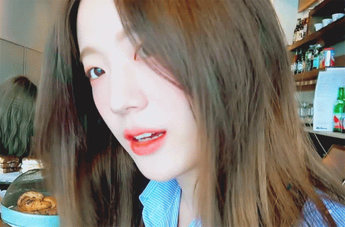 Jang Gyuri from Fromis9 with a captivating gaze, in a cafe setting.