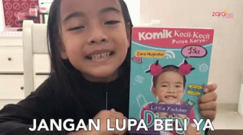 Zara Cute promotes her comic book 'Komik Kecil-Kecil Punya Karya', reminding viewers to buy it.