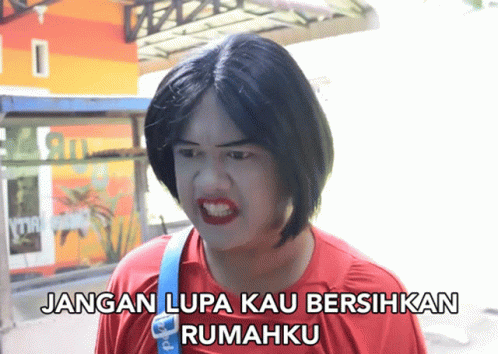 Woman in red shirt with dramatic makeup reminds viewers, 'Don't forget to clean my house!' from Warintil Official.
