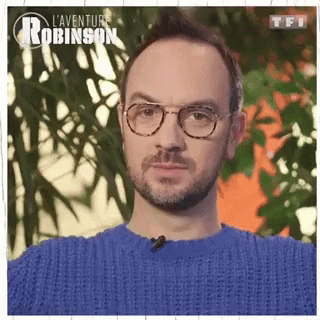 Jarry making a heart shape with his hands, wearing glasses and a blue sweater.
