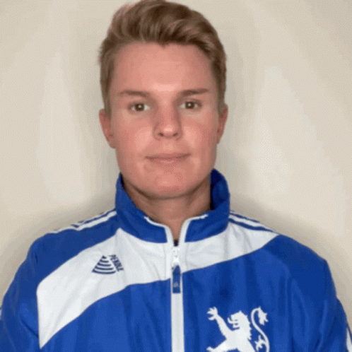 Jason Reed, wearing a blue and white ICW jacket with a lion crest, poses for the camera.