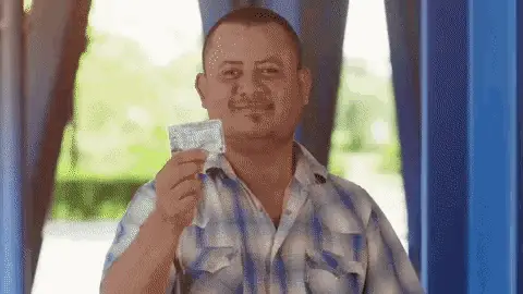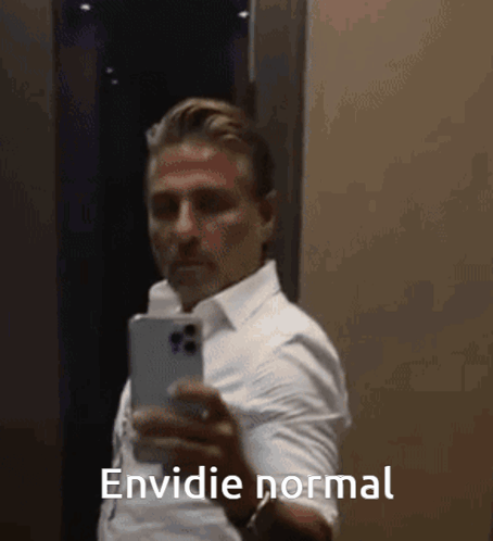 Javier Ferrer takes an elevator selfie with the caption 'Envidie normal' (Normal envy), appearing to give advice.