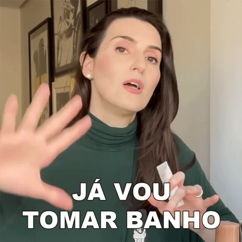 Cinthia Ferreira announces she's going to take a shower, gesturing with her hands and a clear expression.
