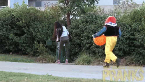 Jay Karl's clown prank causes a woman to faint on the sidewalk after being surprised by the scary clown.