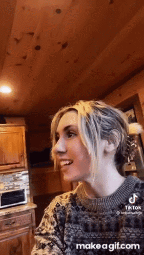 Jay69design smiling in a rustic kitchen, wearing a patterned sweater.
