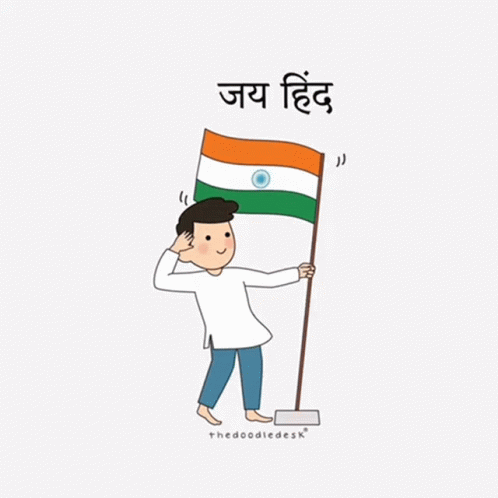 A cartoon character from The Doodle Desk salutes the Indian Flag, celebrating Indian Independence Day with "Jai Hind".