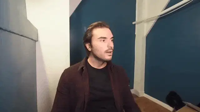 Man smiling and speaking directly to the camera, with the French caption 'Je t'aime ma belle' displayed.