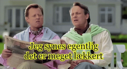 Two men from 'Snobberne' (The Snobs) sitting on a bench, one holding a newspaper, saying 'I actually think it's very nice'.