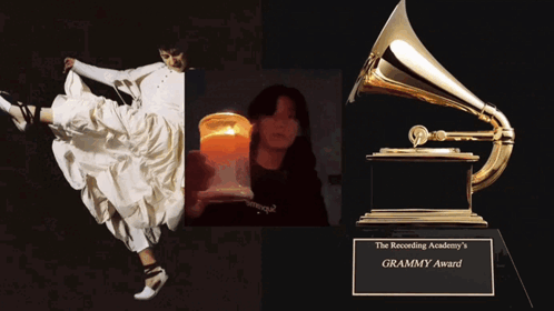 Jegulitos Juanjo featured with a woman in a white dress, a lit candle, and a Grammy Award.