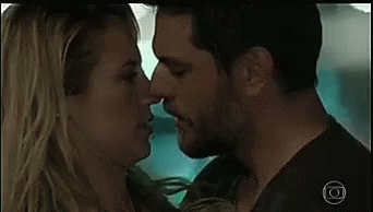 Jeica and Caio share an intimate moment, looking into each other's eyes in a close-up shot.