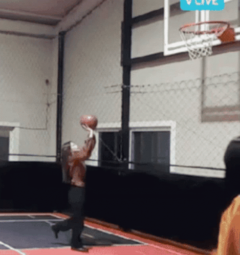 Jennie Kim from Blackpink takes a basketball shot on an indoor court, with a V LIVE watermark.