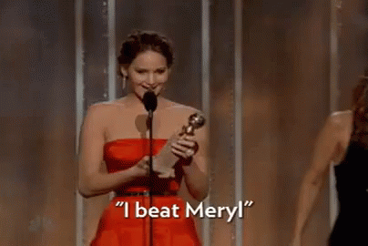 Jennifer Lawrence accepts her Golden Globe award, famously exclaiming 'I beat Meryl'.