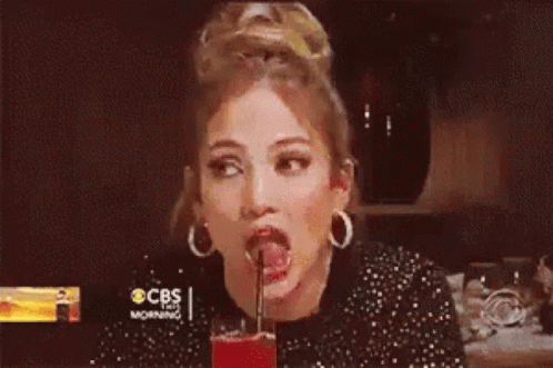 Jennifer Lopez sips a red drink through a straw, with the Italian word 'RIDICOLO' (ridiculous) appearing above her.