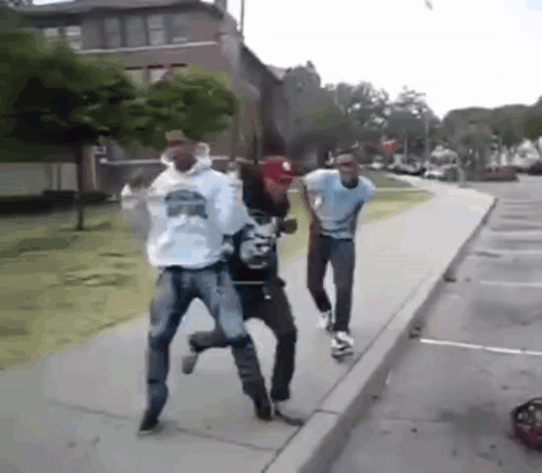 Young men, including tenkay and xaviersobased, perform energetic jerk dance moves outdoors on a sidewalk.