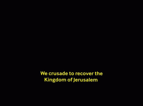 A crusader in a helmet declares the mission to recover the Kingdom of Jerusalem.