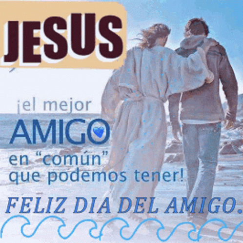 Jesus walking with a man on the beach, celebrated as the best friend for Friend's Day.