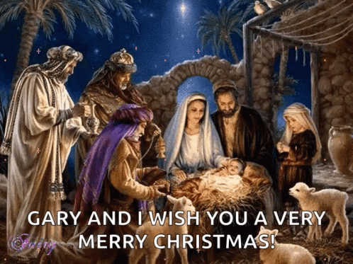 Gary and I wish you a very Merry Christmas! A sparkling Nativity scene with Jesus, Mary, Joseph, and the Wise Men.