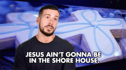 Vinny from Jersey Shore Family Vacation declares that Jesus ain't gonna be in the shore house.
