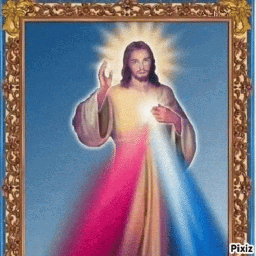 Animated puzzle revealing the Divine Mercy image of Jesus, with light emanating from his heart.