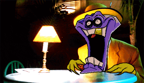Jewel Ghoul from Antonblast with a wide, exaggerated smile and long tongue at a table.