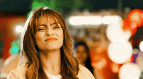Sunehri from Naamkarann makes a 'Jhakkas' expression, smiling brightly with a blurred, festive background.