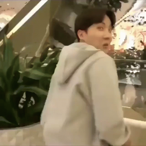 Jhope, also known as Hobi, running through a mall with the Korean caption 'Hobi, save me'.