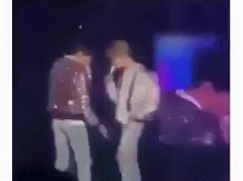 Jikook performing together on stage, interacting closely during their captivating act.