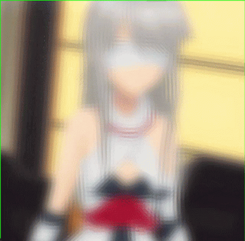 Jinguji Mari from Alice Gear Aegis dancing in a white and black dress with a red bow and blindfold.