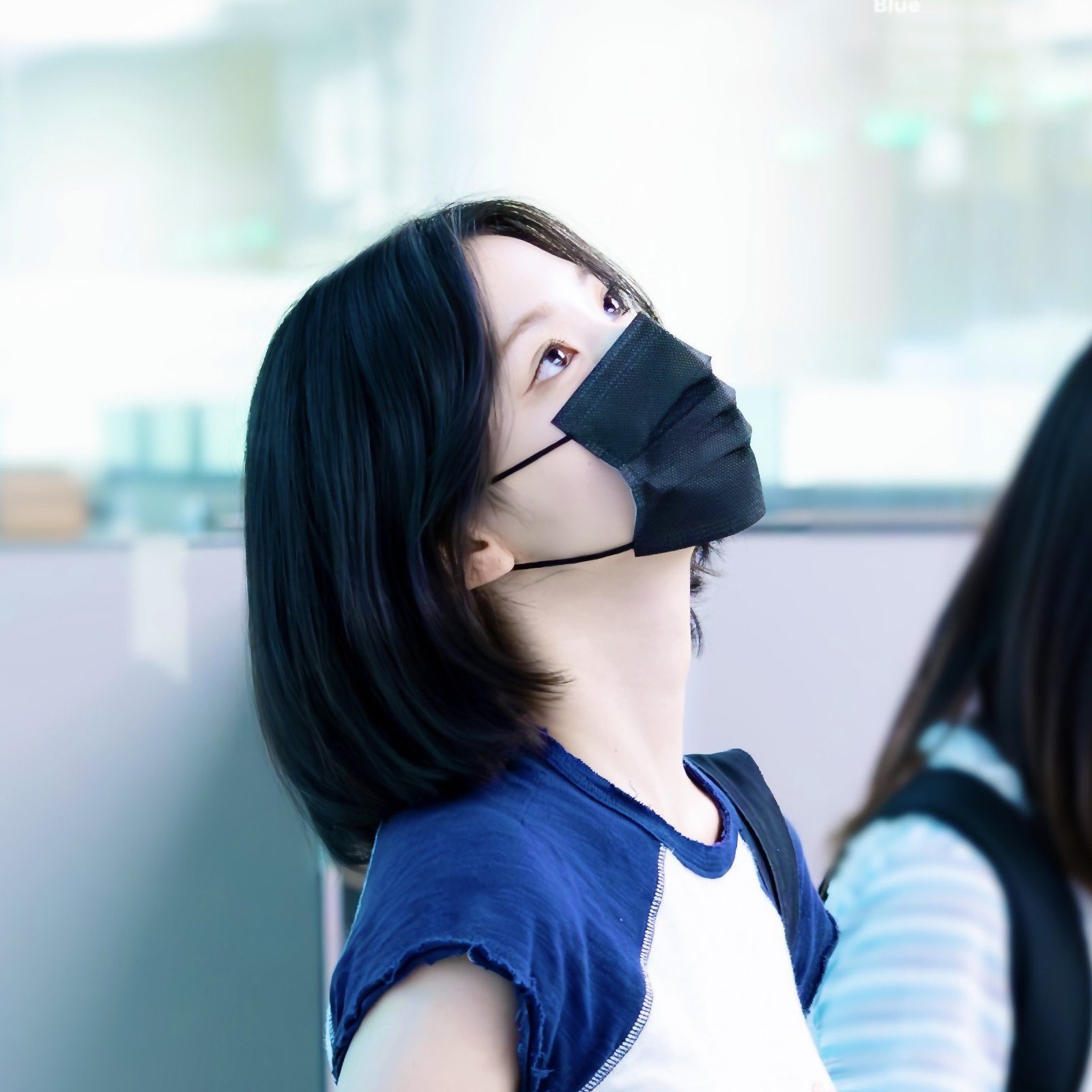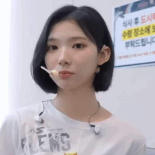 a young woman with short hair is eating a lollipop .